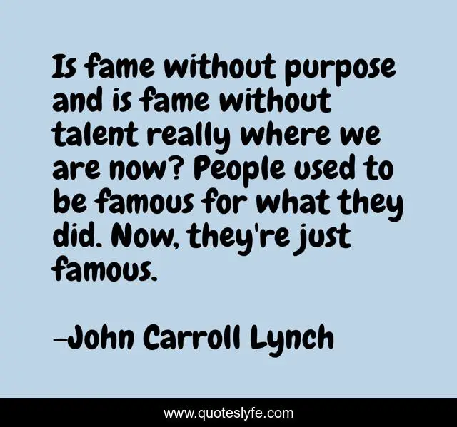 "John Carroll Lynch Quotes." Quoteslyfe.com, 2025. Fri. 05 Dec. 2025. <https://www.quoteslyfe.com/quote/Is-fame-without-purpose-and-is-fame-291553>.