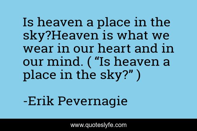 This page presents the quote "Is heaven a place in the sky?Heaven is what we wear in our heart and in our mind. ( “Is heaven a place in the sky?” )". Author of this quote is Erik Pevernagie. This quote is about heart, heaven, sky, mind, place, wear,.