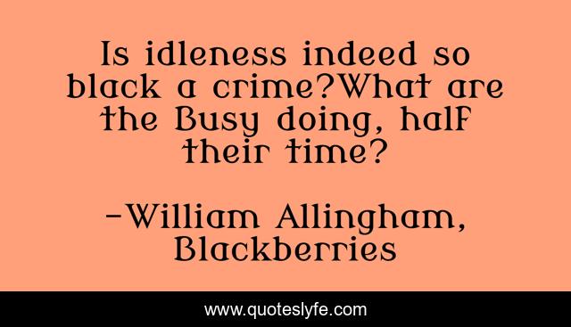 "William Allingham, Blackberries Quotes." Quoteslyfe.com, 2025. Fri. 05 Dec. 2025. <https://www.quoteslyfe.com/quote/Is-idleness-indeed-so-black-a-crime-39443>.