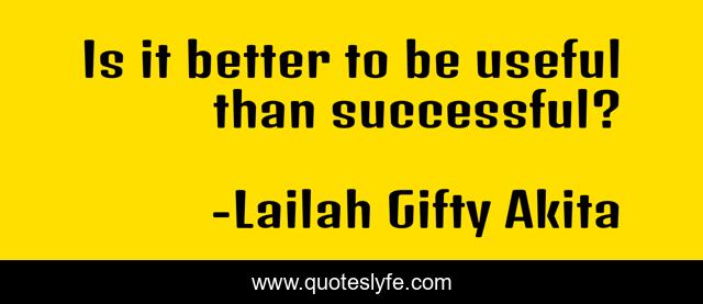 This page presents the quote "Is it better to be useful than successful?". Author of this quote is Lailah Gifty Akita. This quote is about successful, motivation, better-life,.