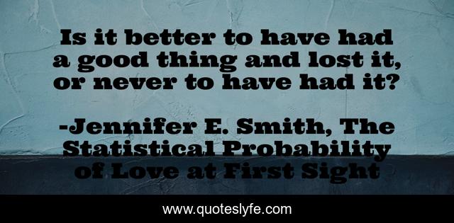 This page presents the quote "Is it better to have had a good thing and lost it, or never to have had it?". Author of this quote is Jennifer E. Smith, The Statistical Probability of Love at First Sight. .