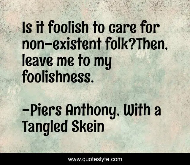"Piers Anthony, With a Tangled Skein Quotes." Quoteslyfe.com, 2025. Sat. 06 Dec. 2025. <https://www.quoteslyfe.com/quote/Is-it-foolish-to-care-for-non-112145>.