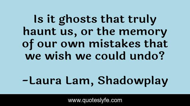 This page presents the quote "Is it ghosts that truly haunt us, or the memory of our own mistakes that we wish we could undo?". Author of this quote is Laura Lam, Shadowplay. This quote is about haunting, ghosts, mistakes,.