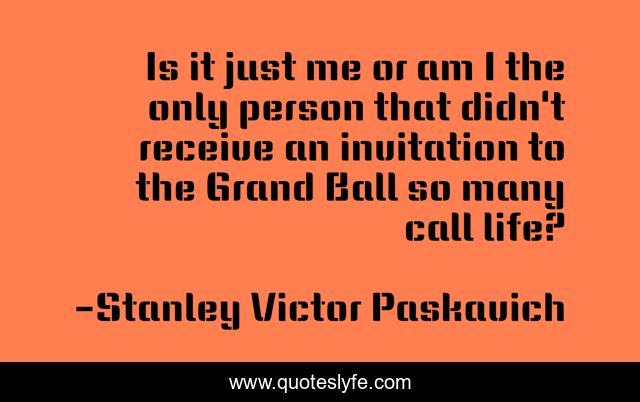 This page presents the quote "Is it just me or am I the only person that didn't receive an invitation to the Grand Ball so many call life?". Author of this quote is Stanley Victor Paskavich. .