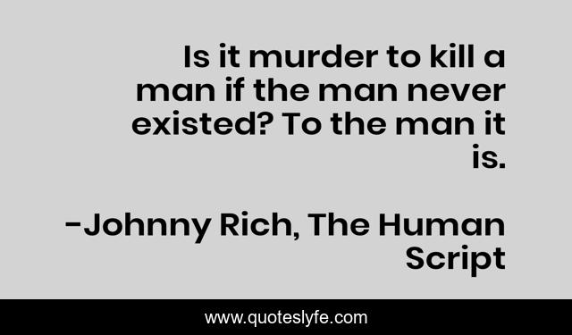 "Johnny Rich, The Human Script Quotes." Quoteslyfe.com, 2025. Mon. 08 Dec. 2025. <https://www.quoteslyfe.com/quote/Is-it-murder-to-kill-a-man-100818>.