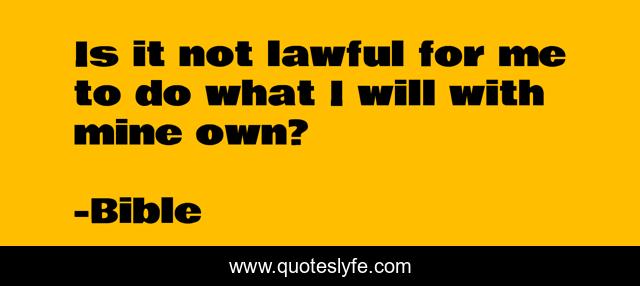 This page presents the quote "Is it not lawful for me to do what I will with mine own?". Author of this quote is Bible. .