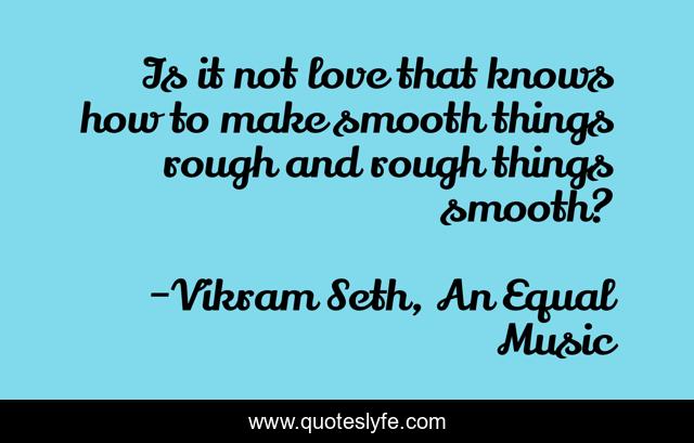 This page presents the quote "Is it not love that knows how to make smooth things rough and rough things smooth?". Author of this quote is Vikram Seth, An Equal Music. This quote is about philosophical, love, romantic, affection,.