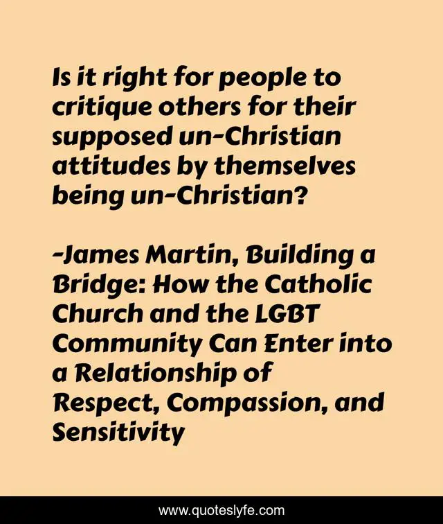 "James Martin, Building a Bridge: How the Catholic Church and the LGBT Community Can Enter into a Relationship of Respect, Compassion, and Sensitivity Quotes." Quoteslyfe.com, 2025. Sat. 06 Dec. 2025. <https://www.quoteslyfe.com/quote/Is-it-right-for-people-to-critique-61913>.
