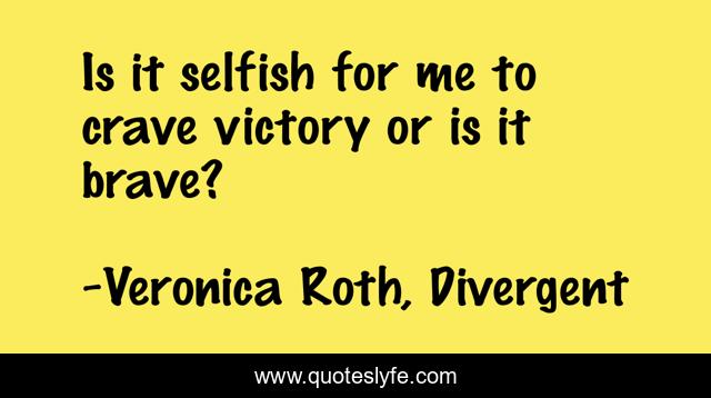 This page presents the quote "Is it selfish for me to crave victory or is it brave?". Author of this quote is Veronica Roth, Divergent. This quote is about courage, brave, divergent,.