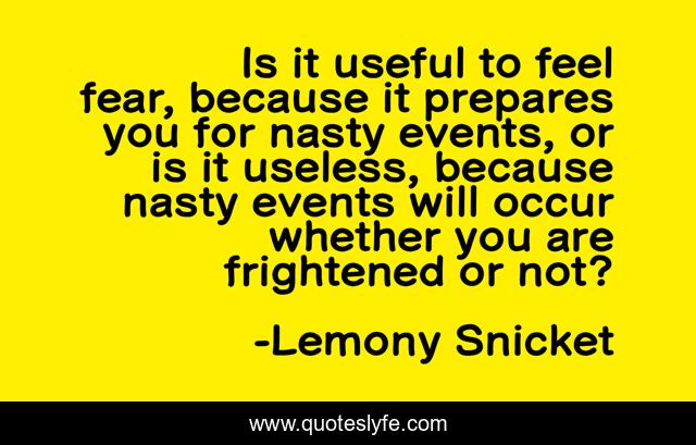 This page presents the quote "Is it useful to feel fear, because it prepares you for nasty events, or is it useless, because nasty events will occur whether you are frightened or not?". Author of this quote is Lemony Snicket. .