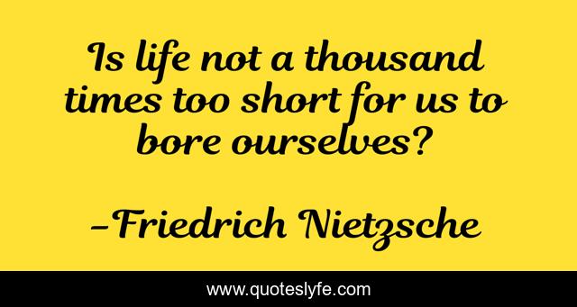 This page presents the quote "Is life not a thousand times too short for us to bore ourselves?". Author of this quote is Friedrich Nietzsche. This quote is about life, boredom,.