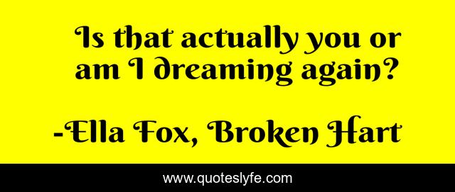 This page presents the quote "Is that actually you or am I dreaming again?". Author of this quote is Ella Fox, Broken Hart. This quote is about homecoming, dreaming,.