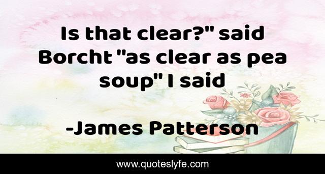 This page presents the quote "Is that clear?" said Borcht "as clear as pea soup" I said". Author of this quote is James Patterson. This quote is about funny, comedy,.