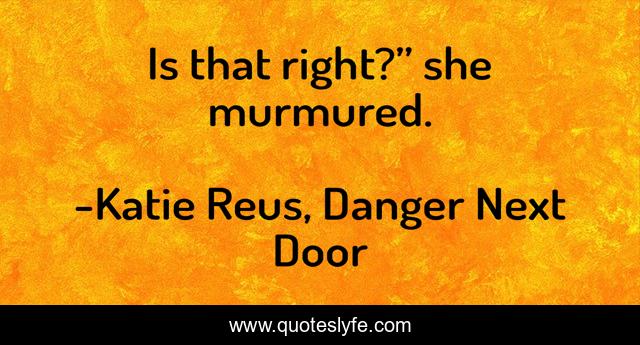 This page presents the quote "Is that right?” she murmured.". Author of this quote is Katie Reus, Danger Next Door. This quote is about romantic-thriller, ex-military-romance, romantic-suspense,.