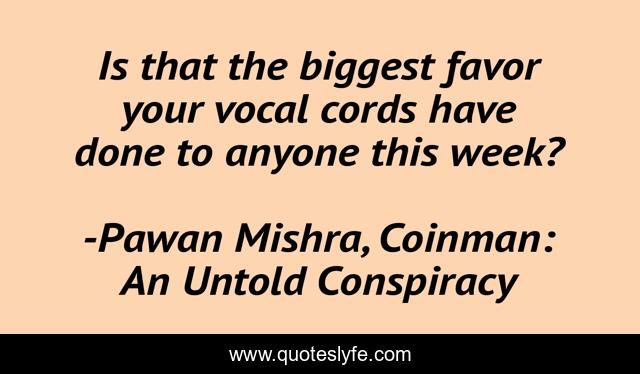 "Pawan Mishra, Coinman: An Untold Conspiracy Quotes." Quoteslyfe.com, 2025. Fri. 05 Dec. 2025. <https://www.quoteslyfe.com/quote/Is-that-the-biggest-favor-your-vocal-149493>.