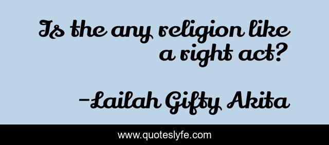This page presents the quote "Is the any religion like a right act?". Author of this quote is Lailah Gifty Akita. This quote is about christian, deeds, actions, religion, life-lesons, act,.