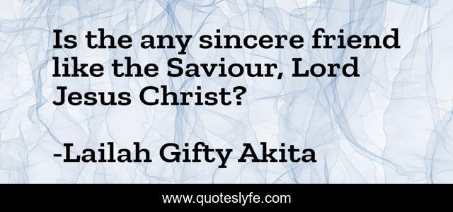 This page presents the quote "Is the any sincere friend like the Saviour, Lord Jesus Christ?". Author of this quote is Lailah Gifty Akita. This quote is about jesus-christ, saviour, fellowship, inspirational, enthusiasm, friends,.