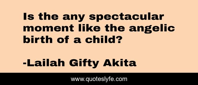 This page presents the quote "Is the any spectacular moment like the angelic birth of a child?". Author of this quote is Lailah Gifty Akita. This quote is about angelic, spectacular, moments, child-birth, inspirational, life-philosophy, pregnancy, enthusiasm,.