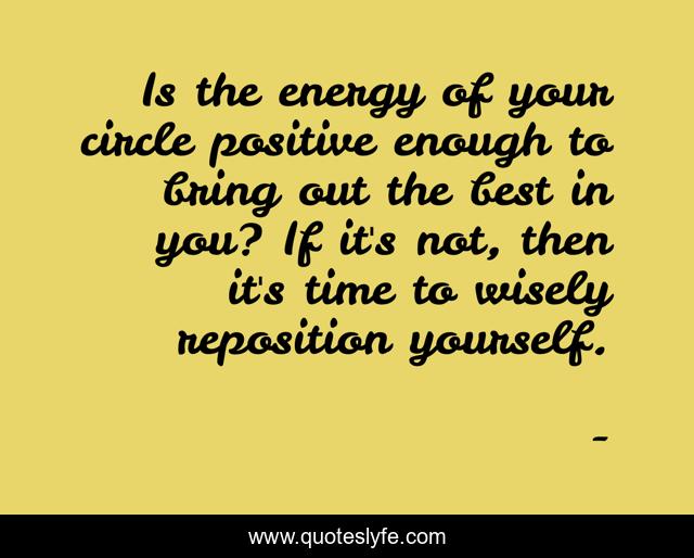 This page presents the quote "Is the energy of your circle positive enough to bring out the best in you? If it's not, then it's time to wisely reposition yourself.". Author of this quote is . This quote is about edmond-mbiaka, the-energy-of-your-circle, what-kind-of-circle-do-you-keep,.