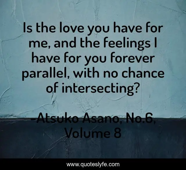 This page presents the quote "Is the love you have for me, and the feelings I have for you forever parallel, with no chance of intersecting?". Author of this quote is Atsuko Asano, No.6, Volume 8. This quote is about emotional-pain, sad,.