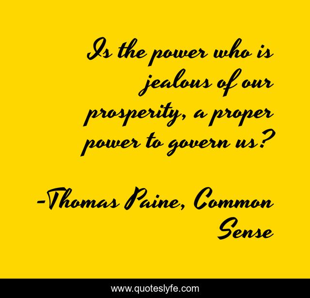 "Thomas Paine, Common Sense Quotes." Quoteslyfe.com, 2025. Sun. 07 Dec. 2025. <https://www.quoteslyfe.com/quote/Is-the-power-who-is-jealous-of-174198>.