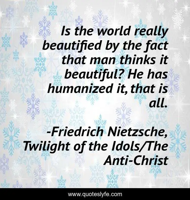 "Friedrich Nietzsche, Twilight of the Idols/The Anti-Christ Quotes." Quoteslyfe.com, 2025. Sat. 06 Dec. 2025. <https://www.quoteslyfe.com/quote/Is-the-world-really-beautified-by-the-61071>.