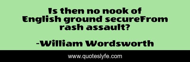 This page presents the quote "Is then no nook of English ground secureFrom rash assault?". Author of this quote is William Wordsworth. This quote is about countryside, development, planning, intrusion, landscape,.