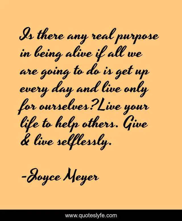 This page presents the quote "Is there any real purpose in being alive if all we are going to do is get up every day and live only for ourselves?Live your life to help others. Give & live selflessly.". Author of this quote is Joyce Meyer. This quote is about enthusiasm, inspirational,.