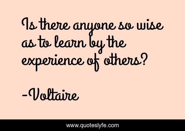 This page presents the quote "Is there anyone so wise as to learn by the experience of others?". Author of this quote is Voltaire. .