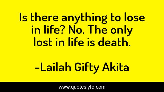 This page presents the quote "Is there anything to lose in life? No. The only lost in life is death.". Author of this quote is Lailah Gifty Akita. This quote is about enthusiasm, life, experience, inspirational, wisdom,.