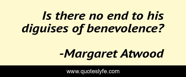 This page presents the quote "Is there no end to his diguises of benevolence?". Author of this quote is Margaret Atwood. This quote is about privilege, men, entitlement,.