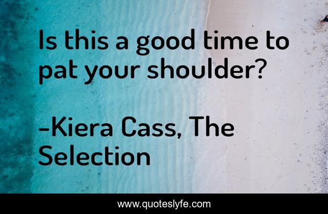 This page presents the quote "Is this a good time to pat your shoulder?". Author of this quote is Kiera Cass, The Selection. This quote is about maxon, america,.