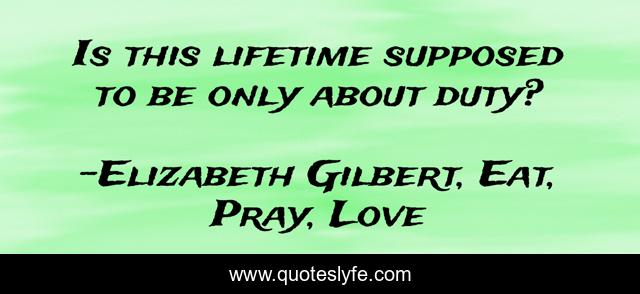 This page presents the quote "Is this lifetime supposed to be only about duty?". Author of this quote is Elizabeth Gilbert, Eat, Pray, Love. This quote is about eat-pray-love, elizabeth-gilbert, life-philosophy,.