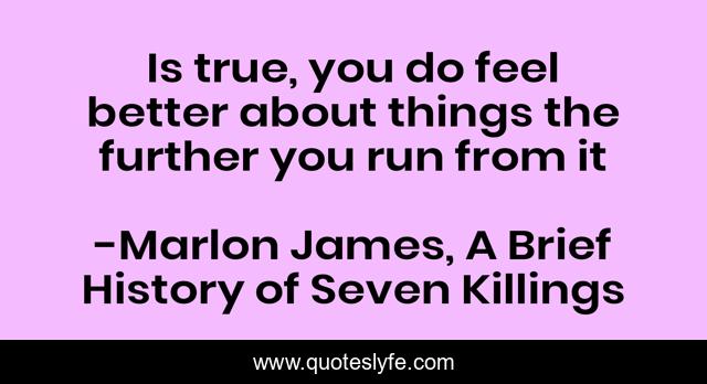 This page presents the quote "Is true, you do feel better about things the further you run from it". Author of this quote is Marlon James, A Brief History of Seven Killings. .