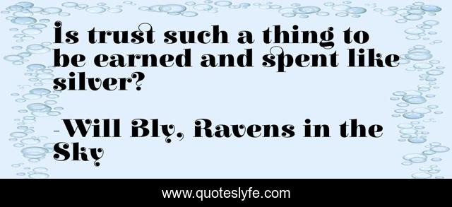 This page presents the quote "Is trust such a thing to be earned and spent like silver?". Author of this quote is Will Bly, Ravens in the Sky. This quote is about trustworthy, trusting, trust, trust-issues,.