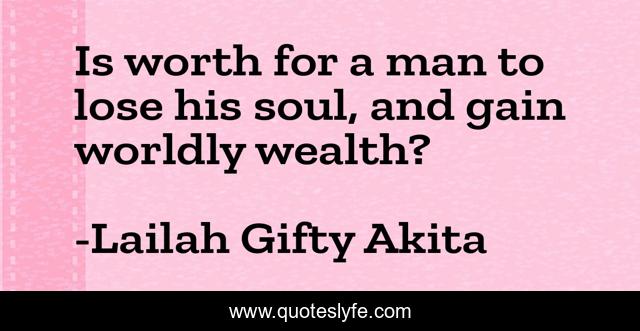 This page presents the quote "Is worth for a man to lose his soul, and gain worldly wealth?". Author of this quote is Lailah Gifty Akita. This quote is about loss, christian, wealth, pleasures, advice, riches, soul, inspirational, enthusiasm,.