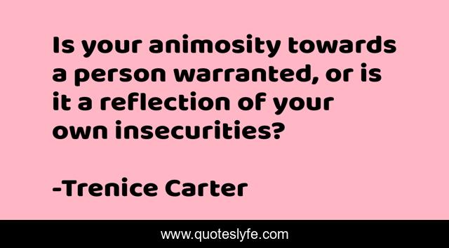 This page presents the quote "Is your animosity towards a person warranted, or is it a reflection of your own insecurities?". Author of this quote is Trenice Carter. .
