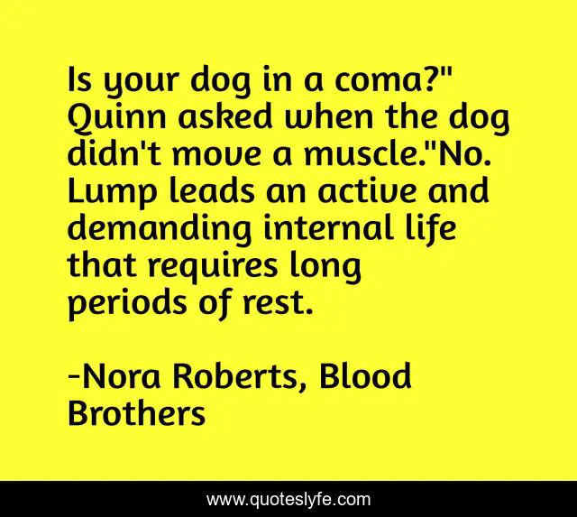 "Nora Roberts, Blood Brothers Quotes." Quoteslyfe.com, 2025. Sat. 06 Dec. 2025. <https://www.quoteslyfe.com/quote/Is-your-dog-in-a-coma-Quinn-229593>.
