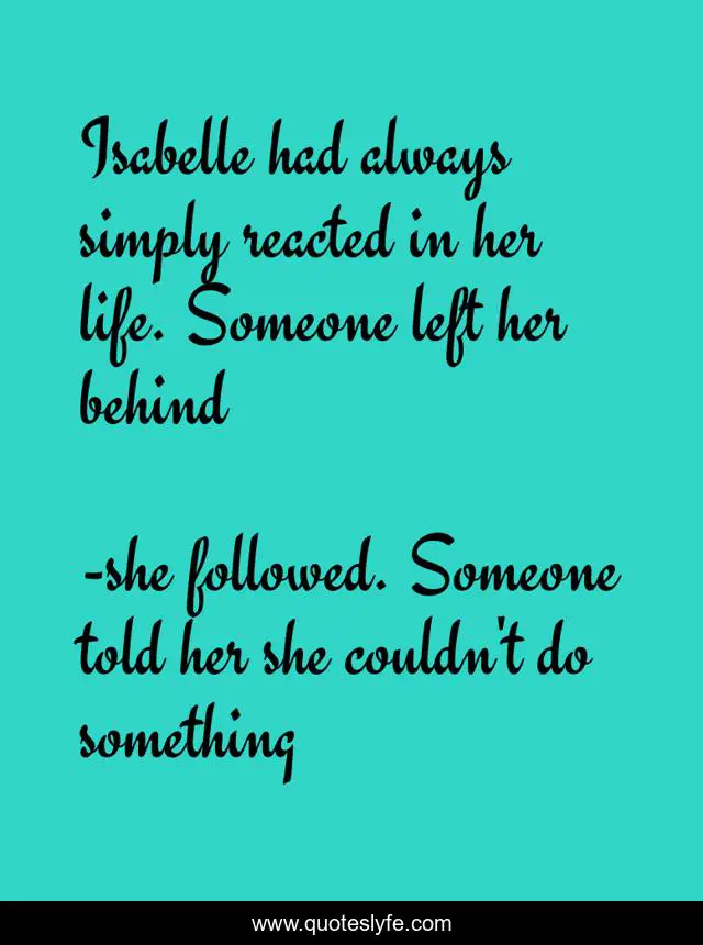"she followed. Someone told her she couldn't do something Quotes." Quoteslyfe.com, 2025. Fri. 05 Dec. 2025. <https://www.quoteslyfe.com/quote/Isabelle-had-always-simply-reacted-in-her-52822>.