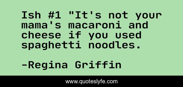 This page presents the quote "Ish #1 "It's not your mama's macaroni and cheese if you used spaghetti noodles.". Author of this quote is Regina Griffin. This quote is about funny, humor, humorous, tags-funny-and-random, funny-but-true, comedy,.