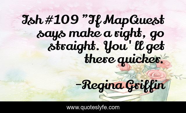 This page presents the quote "Ish #109 "If MapQuest says make a right, go straight. You'll get there quicker.". Author of this quote is Regina Griffin. This quote is about funny, humor, humorous, tags-funny-and-random, funny-but-true, comedy,.