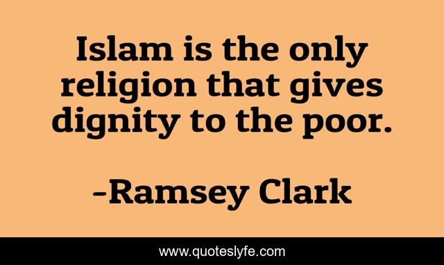 This page presents the quote "Islam is the only religion that gives dignity to the poor.". Author of this quote is Ramsey Clark. This quote is about love, universal, peace, religion, virtue, kindness, humanity, affection, islam,.