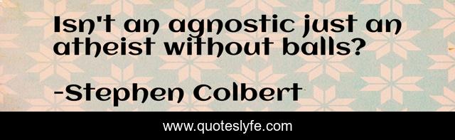 This page presents the quote "Isn't an agnostic just an atheist without balls?". Author of this quote is Stephen Colbert. This quote is about agonosic, humor, atheist,.
