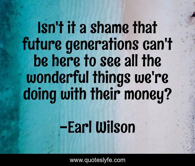 This page presents the quote "Isn't it a shame that future generations can't be here to see all the wonderful things we're doing with their money?". Author of this quote is Earl Wilson. This quote is about see, future,.