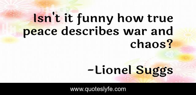 This page presents the quote "Isn't it funny how true peace describes war and chaos?". Author of this quote is Lionel Suggs. This quote is about peace, chaos, war,.