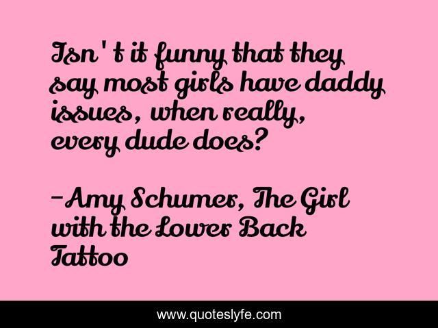 This page presents the quote "Isn't it funny that they say most girls have daddy issues, when really, every dude does?". Author of this quote is Amy Schumer, The Girl with the Lower Back Tattoo. This quote is about funny, comedy, guys, daddy-issues,.