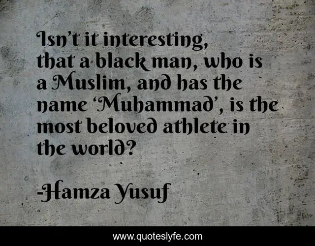 This page presents the quote "Isn’t it interesting, that a black man, who is a Muslim, and has the name ‘Muhammad’, is the most beloved athlete in the world?". Author of this quote is Hamza Yusuf. .