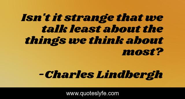 This page presents the quote "Isn't it strange that we talk least about the things we think about most?". Author of this quote is Charles Lindbergh. .