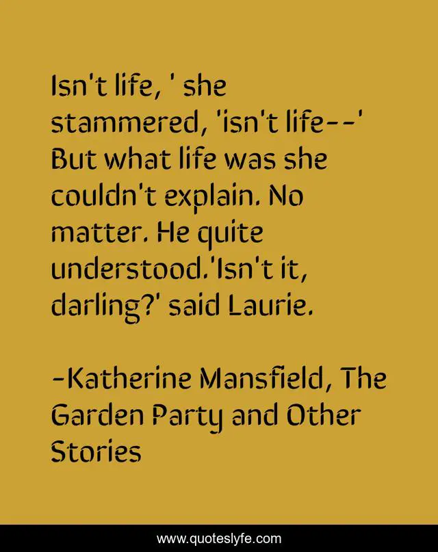 "Katherine Mansfield, The Garden Party and Other Stories Quotes." Quoteslyfe.com, 2025. Tue. 09 Dec. 2025. <https://www.quoteslyfe.com/quote/Isn-t-life-she-stammered-isn-t-20994>.