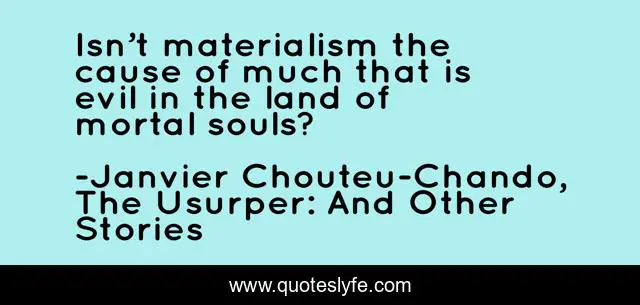 This page presents the quote "Isn’t materialism the cause of much that is evil in the land of mortal souls?". Author of this quote is Janvier Chouteu-Chando, The Usurper: And Other Stories. This quote is about faith, confidence, family, success, positive, motivational, spirituality, optimistic, truth,.